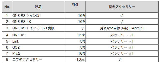 Insta360 ONE X2、さらにプロ向けの製品 Pro2 なども今回の割引対象になります。また、AI 駆動 4K ウ