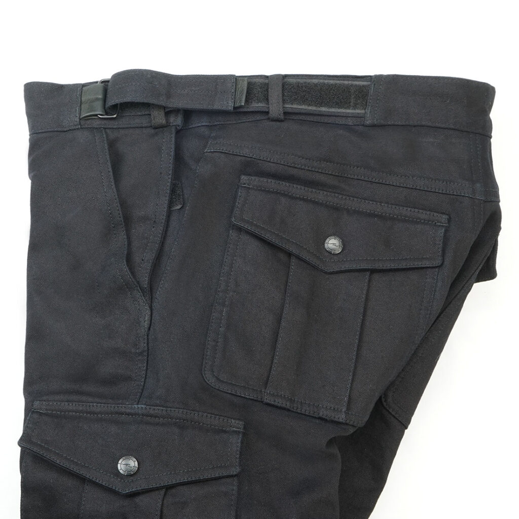 最大の特長は脚の内側部分に牛革のヒートガードを装備している点。これによりエンジンやマフラーの熱から脚を守ってくれる。主要素材はストレッチ性にすぐれたコットンを使用しているため、ワイルドな雰囲気を演出しつつ、良好な履き心地を両立。ライパンにありがちなシャーリングやステッチを排してアパレル感あるシンプルな仕上がりにしている。