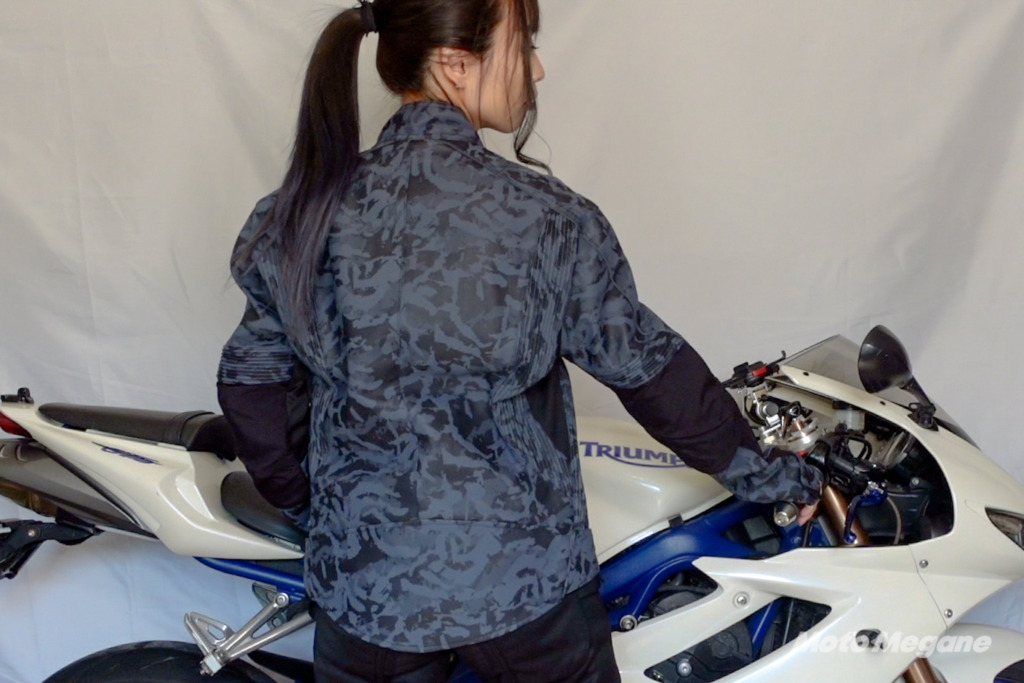 股上が前と比べると後ろの方が長い設計になっているので、かがんだりバイクに跨っても下着が見えたりしません。これは嬉しい!