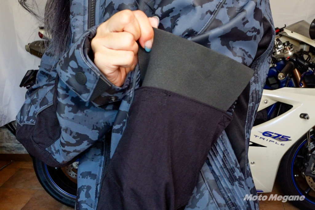 肘から手首にかけて摩耗強度のあるCORDURA 500Dを使用しています。そして肘部分には取り外し可能な簡易的なパッドが入っています。
