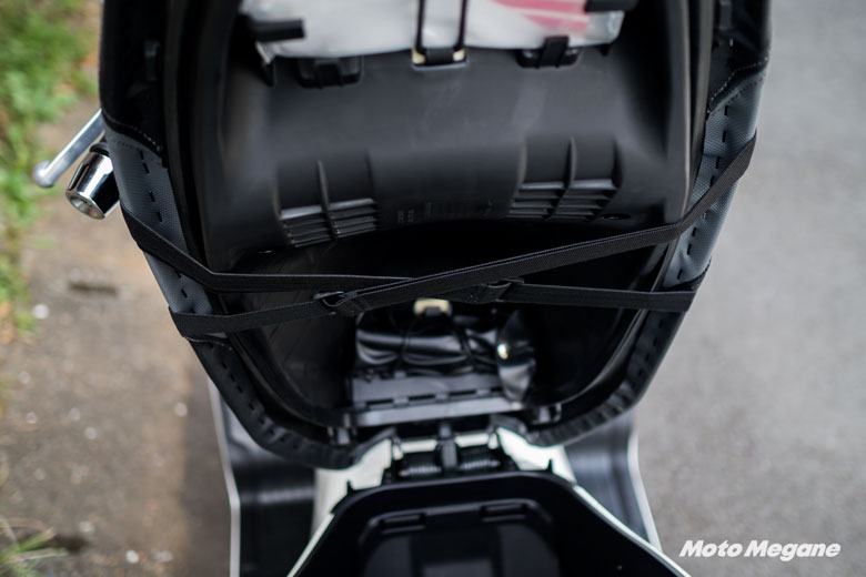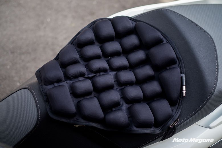 尻を動かして積極的に荷重移動するスポーツライディングでは使い勝手が悪いかもしれないが、そもそも長距離ツーリング用のアイテムなので問題ないだろう。