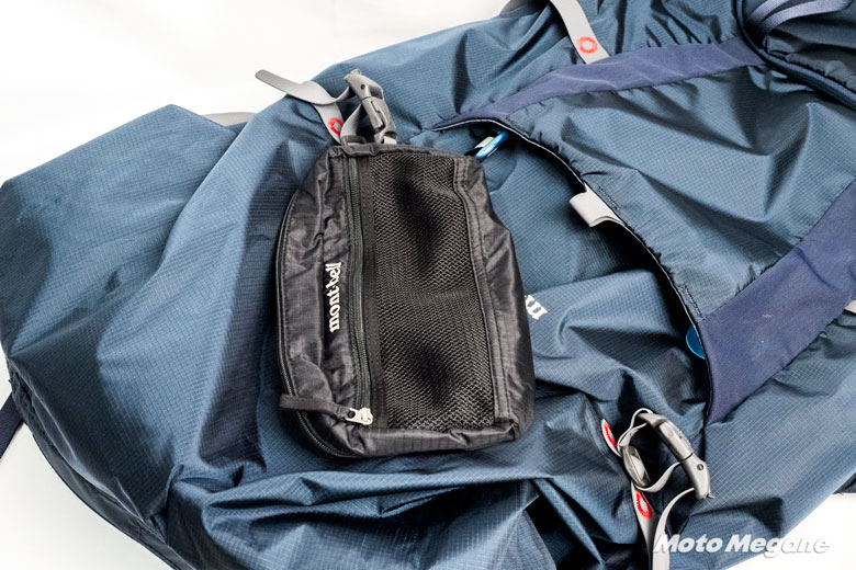 ウエストストラップに大きめの収納がついていること。モンベルの他バッグにもウエストストラップに収納がついている製品もありますが、容量は様々です。