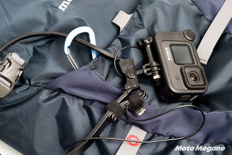 GoPro自体はコンパクトなのですが、ネックマウントと外部マイクがついているので嵩張ります。