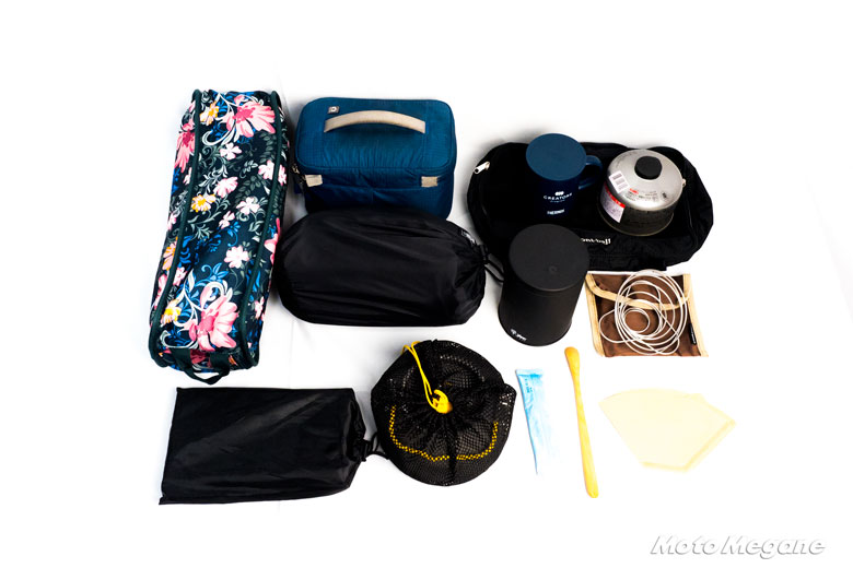 メインに荷室の収納力を調べるためにコーヒーツーリングに行く想定でパッキングしてみました。収納したのは