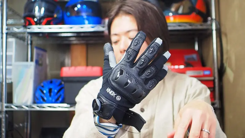 Sサイズだと少々小さく感じたが、Mサイズだと親指部分に余りを感じ、ウインカーなどのスイッチ類の操作性を優先してSサイズを選択した。