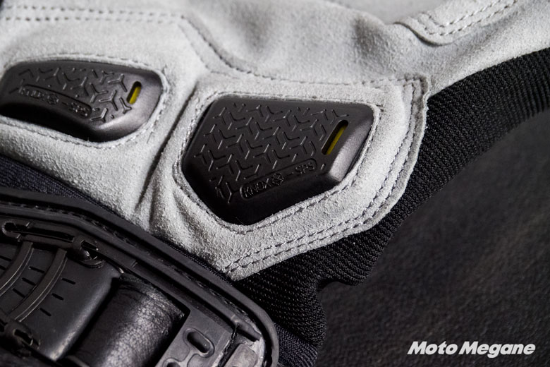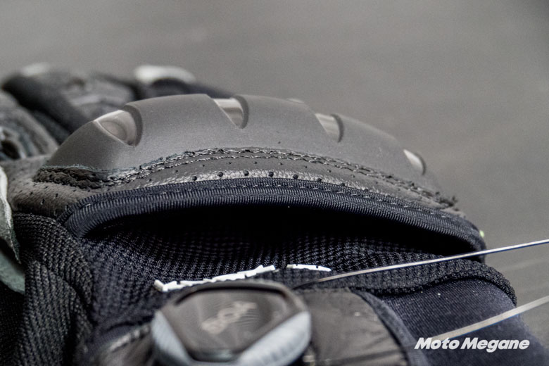 手の甲側には樹脂製のナックルプロテクターを装備。