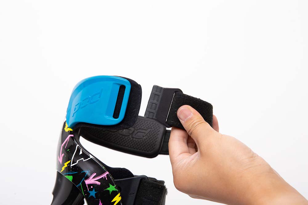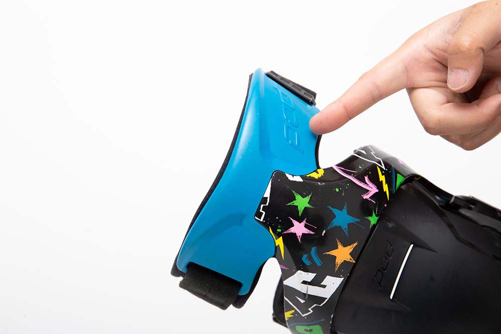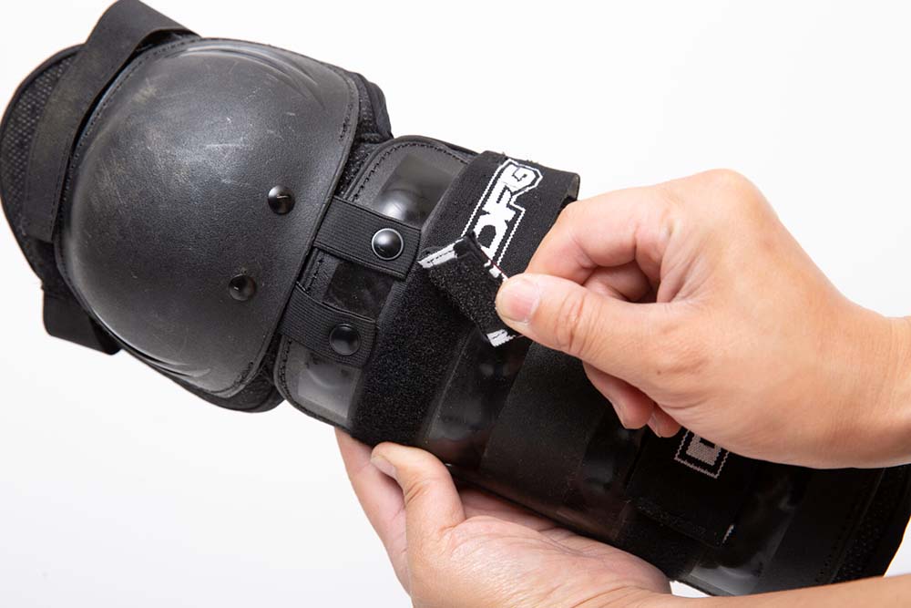 なお、同製品は一番上と下のストラップにクイックロック機能を採用しています。わざわざストラップを穴に通さなくても固定できる簡単さは魅力的。ライディングの動きによってベルクロが取れて、ニーブレースが下がってくるという心配もありません。