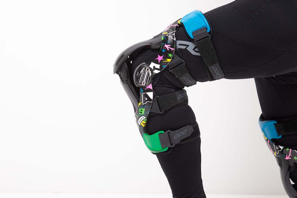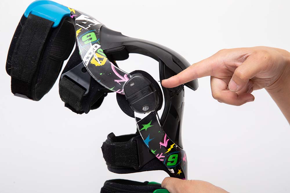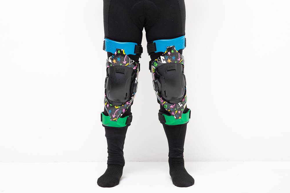 色や柄が入ったフレーム部分は強度の高いグラスファイバー素材で作られており、転倒時の衝撃から脚を保護してくれます。ちなみに、ライドハック編集部には、転倒時にこのフレーム部分を割った編集部員がおり、当時を思い返しては「ニーブレースじゃなかったら大腿骨折ってた……」と話しています。膝を守る防具の中ではプロテクション性能がかなり高く、怪我のリスクを最小に抑えることができます。