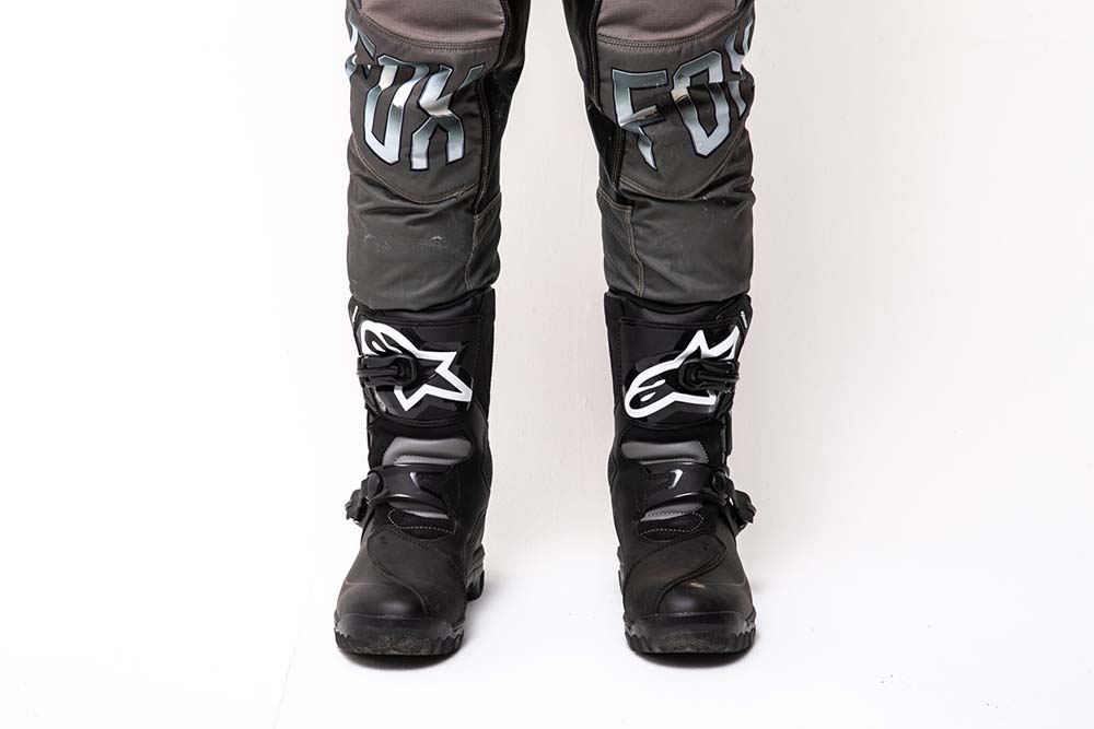 オフロードバイク競技だけでなく、林道走行を楽しむ方も怪我から身を守るための防具は必須。ニーシンガードは薄手のため林道にも使えるのでは? と思い、林道用のショートブーツとも合わせてみました。膝下まであるモトクロスブーツは、履くことでニーブレースやニーシンガードを固定する効果があるのですが林道用ショートブーツはどうでしょうか。