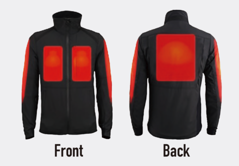 オートバイ用に開発された立体3D裁断によるライディングフォームが特徴。両肩・両胸・背中の5か所にヒーターを内蔵している。比較的薄手でデザイン性のある仕上げで、インナーとしてもアウターとしても使用可能なのも特徴の一つだ。