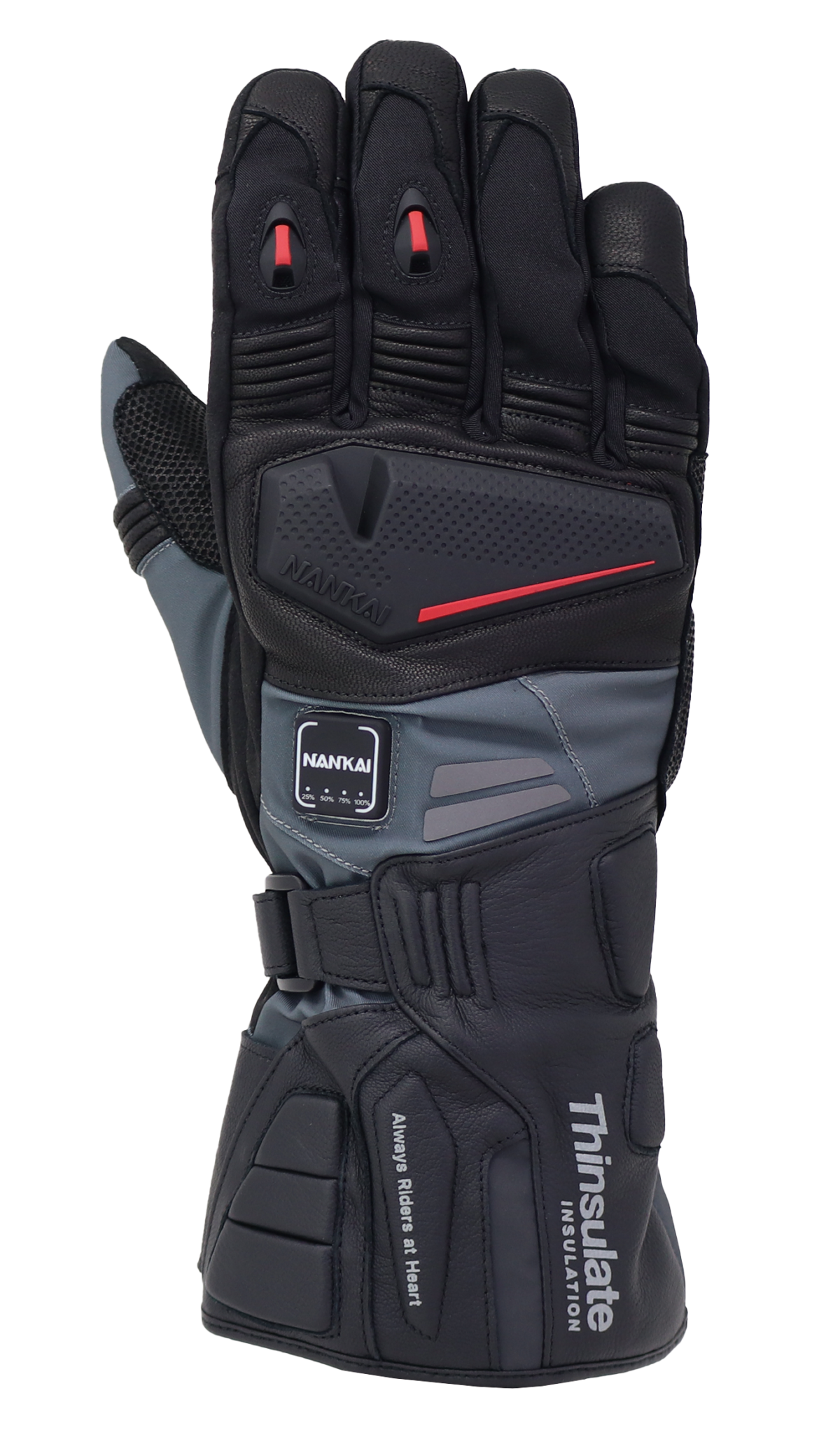 ハードプロテクター仕様で安全性と快適性を両立したモデル。甲側から指先にかけてヒーターを内蔵し、3段階の温度調整が可能。甲部分のスイッチに、25%・50%・75%・100%にて電池残量を表記。内装には防水・透湿性の高い「Thinsulate」フィルムを採用した。
