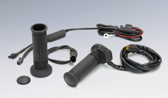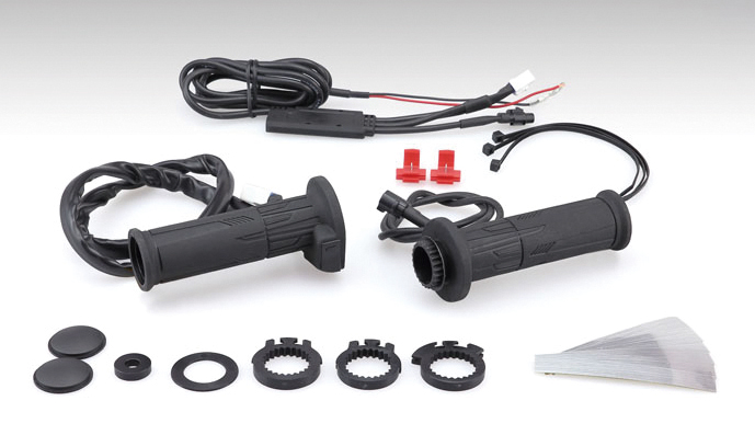 握ったフィーリングを変えないためグリップの太さを限界まで抑えたほか、グリップ全体が均一に温まる様に熱線を端から端まで均一に配置。電圧制御を搭載し、グリップヒーターが原因のバッテリー上がりを防止する。走行中も片手で安全にヒーター温度調節ができる様、クリック式スイッチをグリップ一体型で構成している。