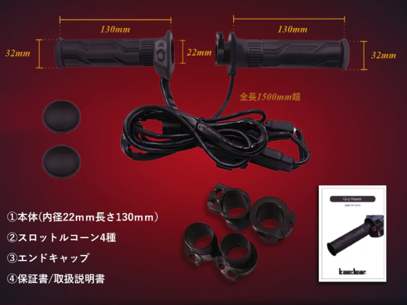 グリップヒーター 130㎜/22.2㎜ スイッチ一体型