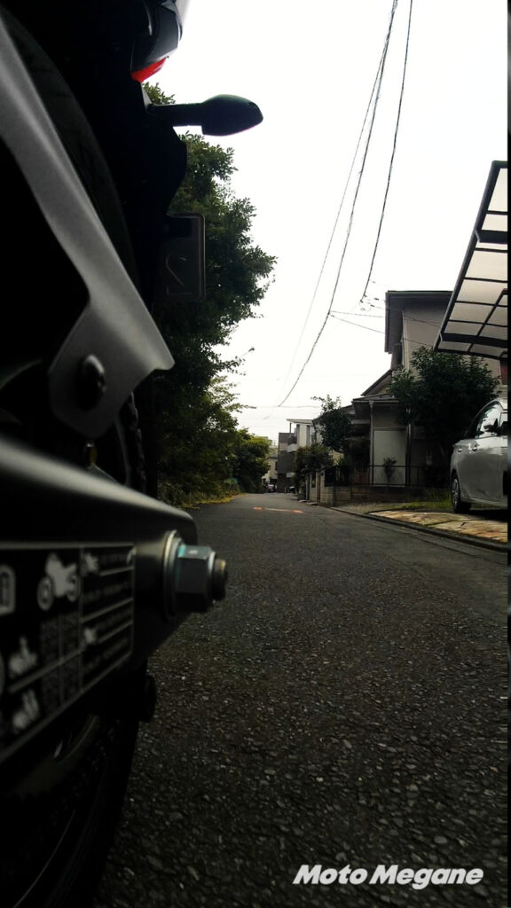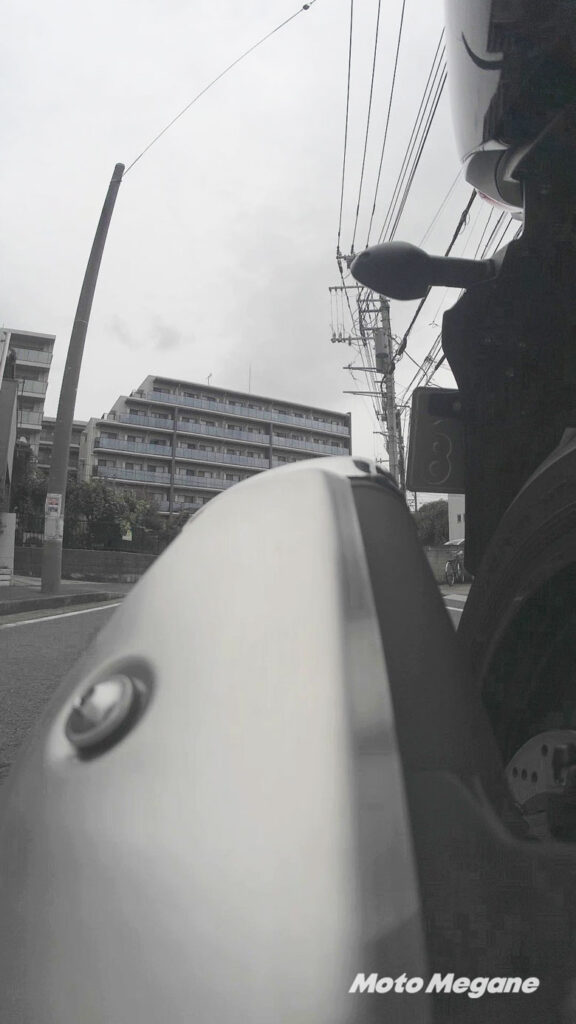目の前にマフラーがドンと映る迫力のある画角となった。前述したようにエンジンやマフラー音を録音しつつ表示させる画角としては良さそうだ。