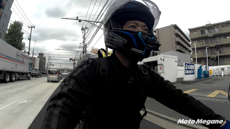 モトブログではライダー目線で動画を撮影しつつ喋るのが一般的な撮影方法。