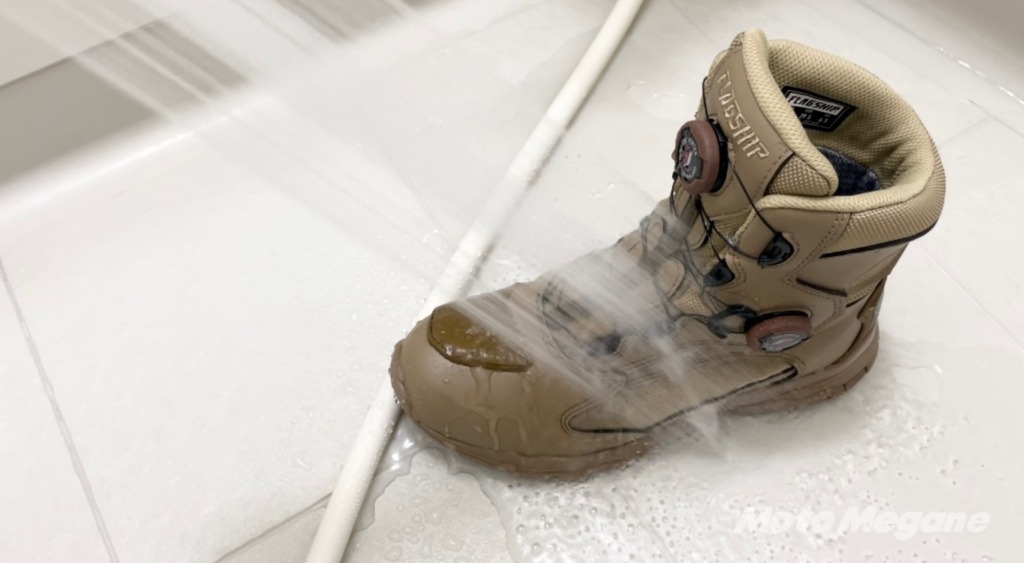 ちなみに防水効果があるのは脛のSPINONシステムぐらいまで。履き口からの雨の浸水には注意しましょう!