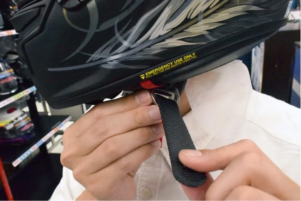 あごひもを締めていない事は、被っていないも同然となります。必ず、短距離であっても短時間であってもあごひもをしっかりと締めましょう。