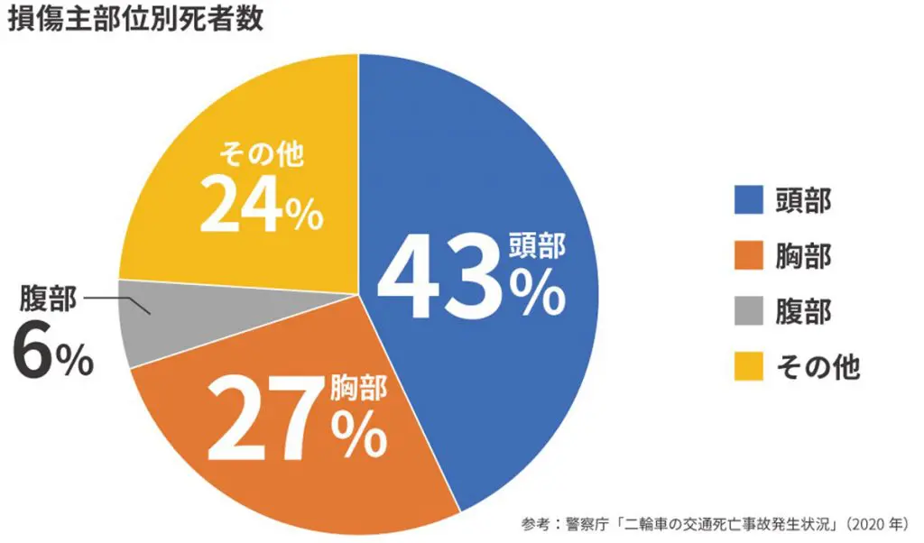 一方で、今も昔も、二輪車の交通死亡事故統計では致命傷部位で約半数が頭部というデータもありますので、今一度、ヘルメットメーカーに正しいヘルメット選びや着用方法について確認してみましょう。
