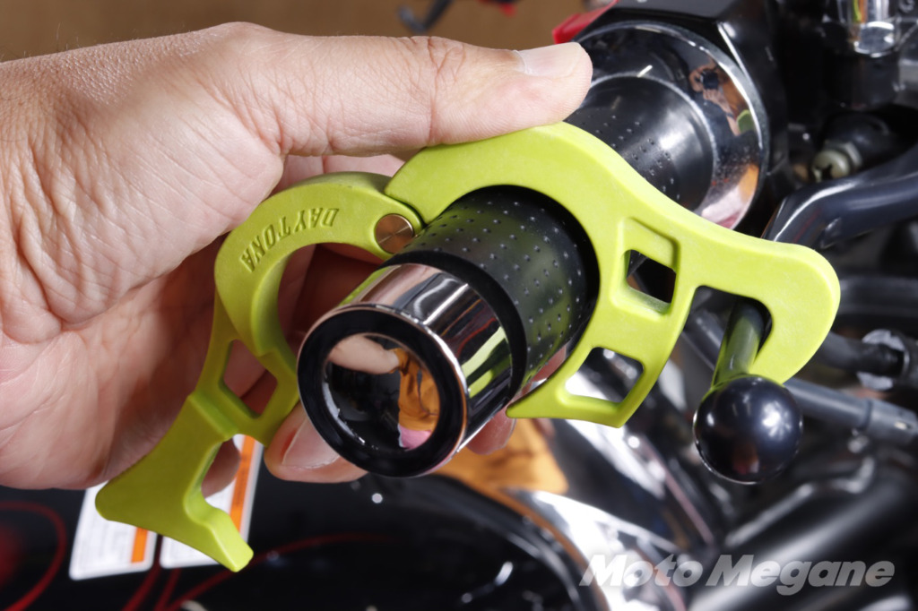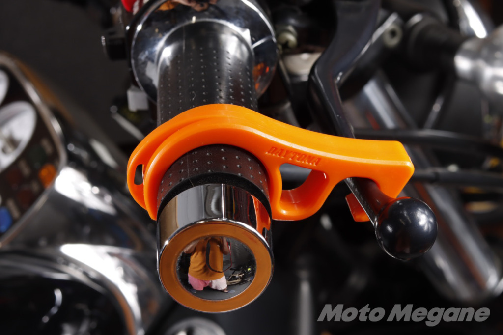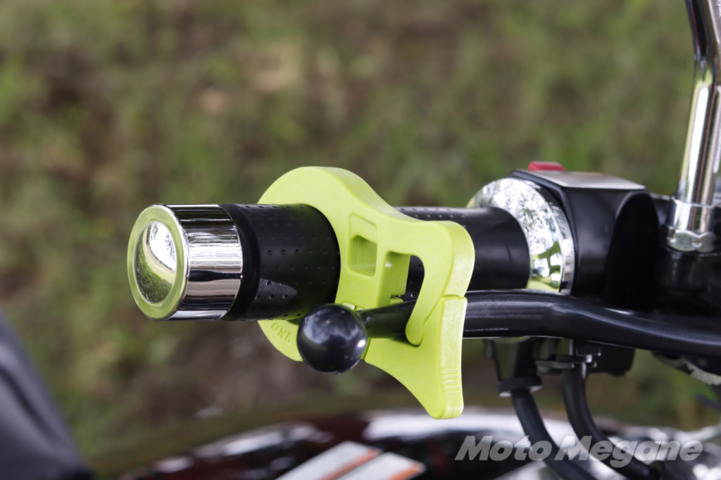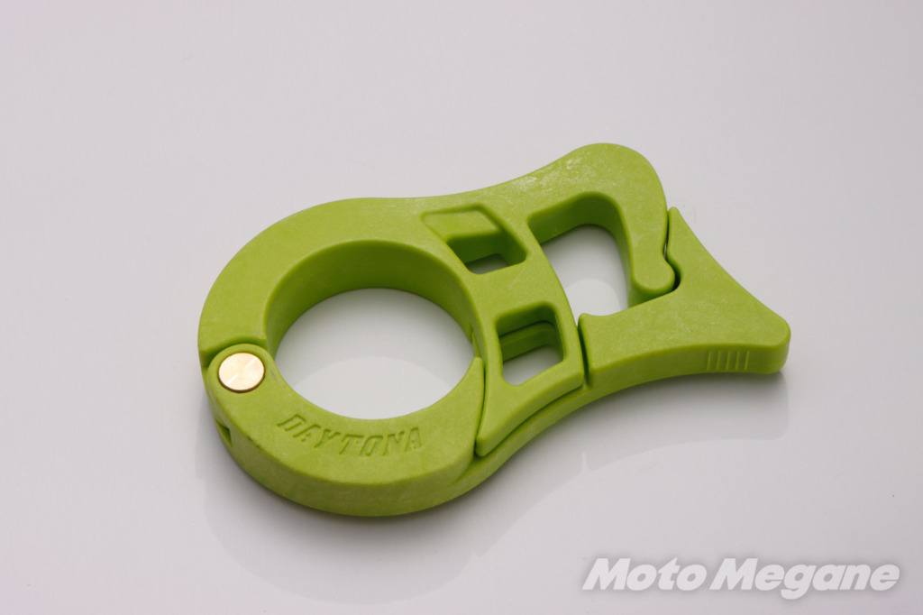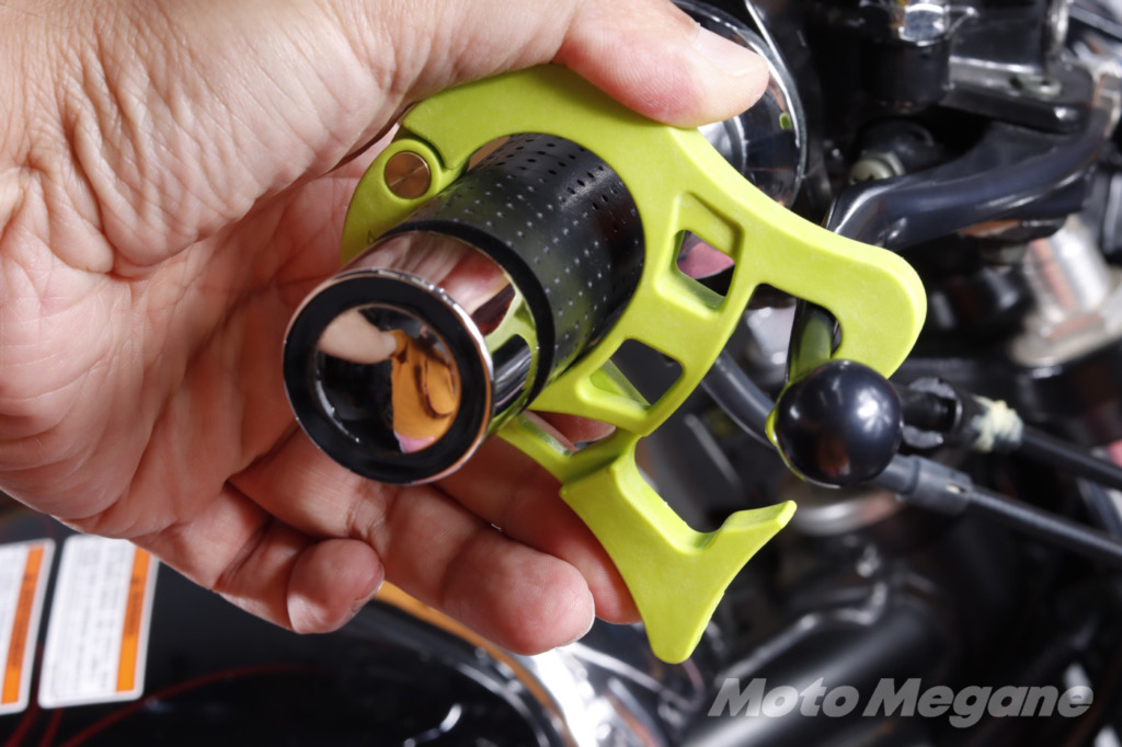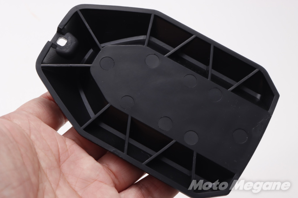 サイドスタンドの下に敷くことで不整地駐車での安定性を果たす、スタンドホルダーも適度なサイズ感で、サイドスタンドのめり込みを防ぐと共に持ち運びにも便利である。一回使ってみれば、簡単に見つかるはずもないちょうど良い石より断然専用品だと理解できるはずだ。
