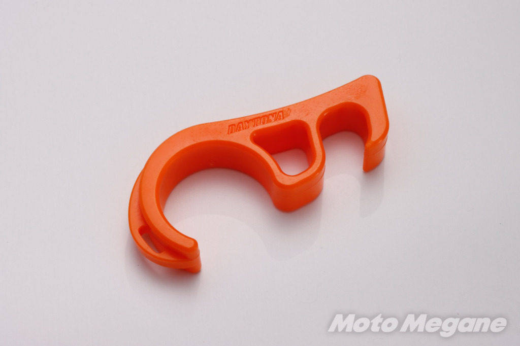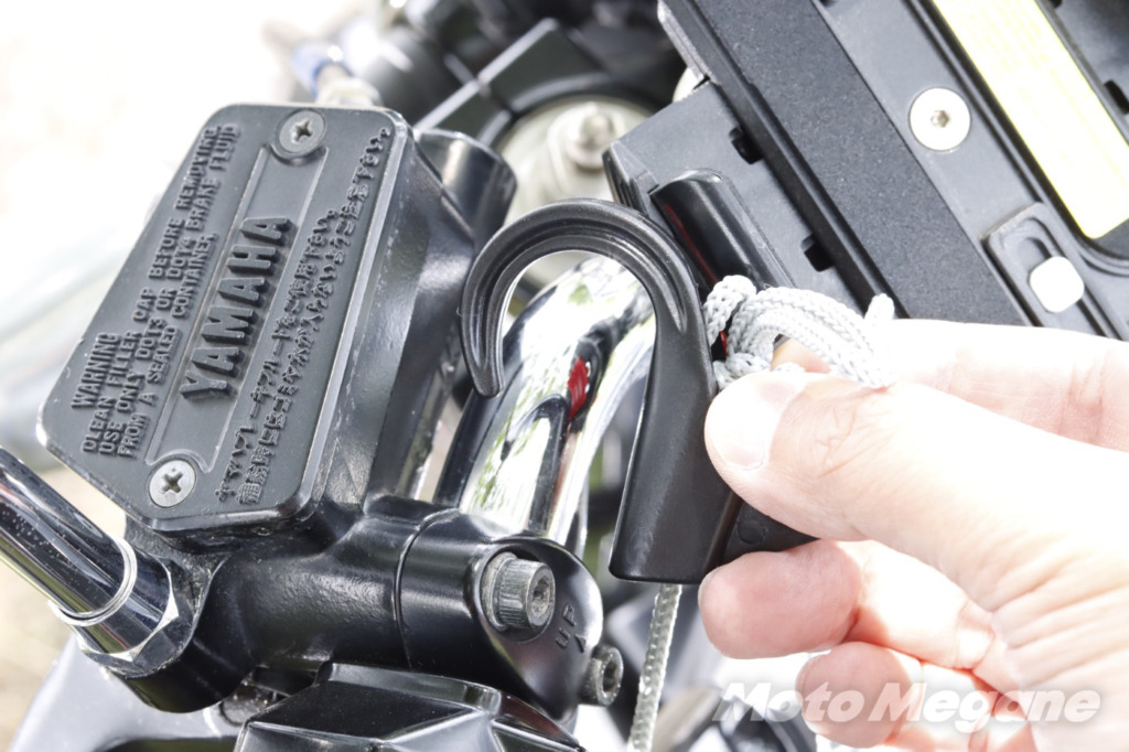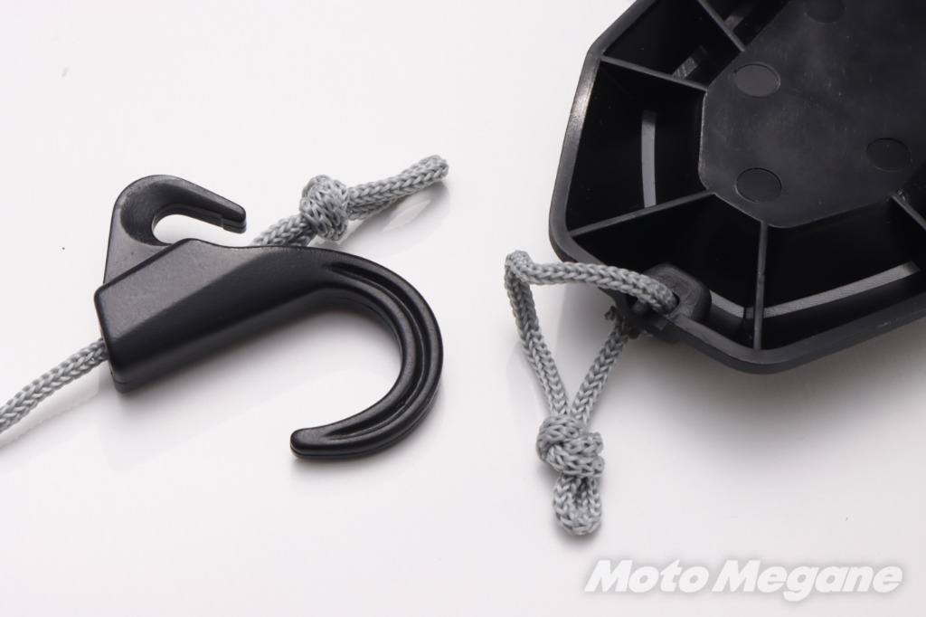 付属のフックをハンドルに引っ掛けておけば、走り出す際も屈まなくて良いし、紛失するリスクも軽減される。同様の役目をするもの他にもあるかもしれないが、屋外の使い勝手もしっかり考えられた当商品が圧倒的にお勧めだ。