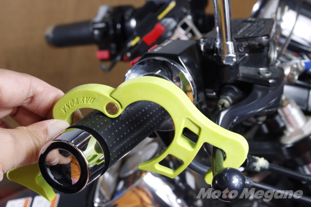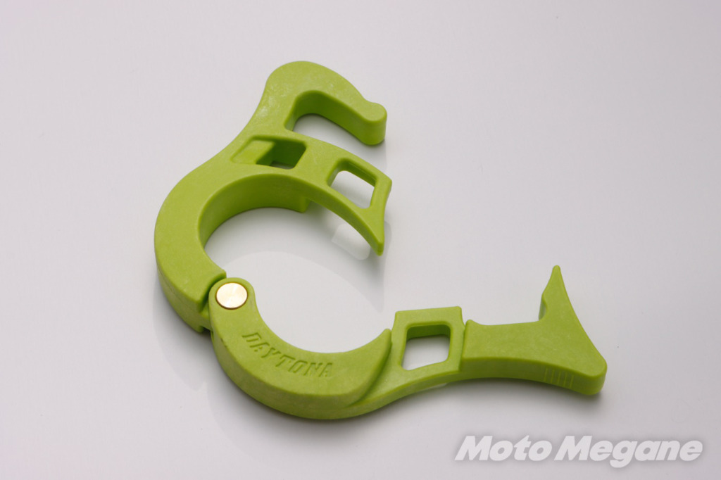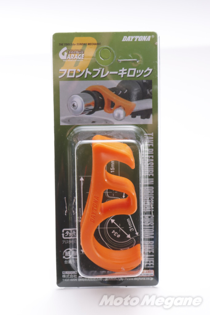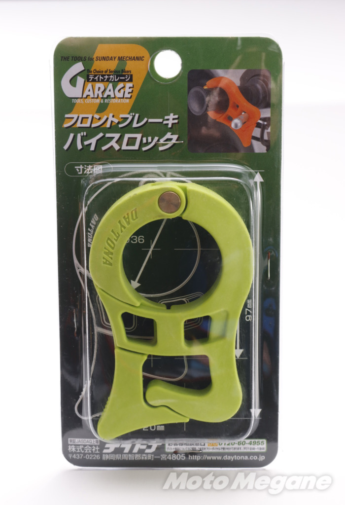 ともに、フロントブレーキを握ったまま保持してくれる商品。使いたい場面は、日常の駐車、傾斜地の駐車時からバイクにレーシングスタンドをかけた時の転倒防止、トランポ輸送の際の安定性の向上など様々な場面で有効である。