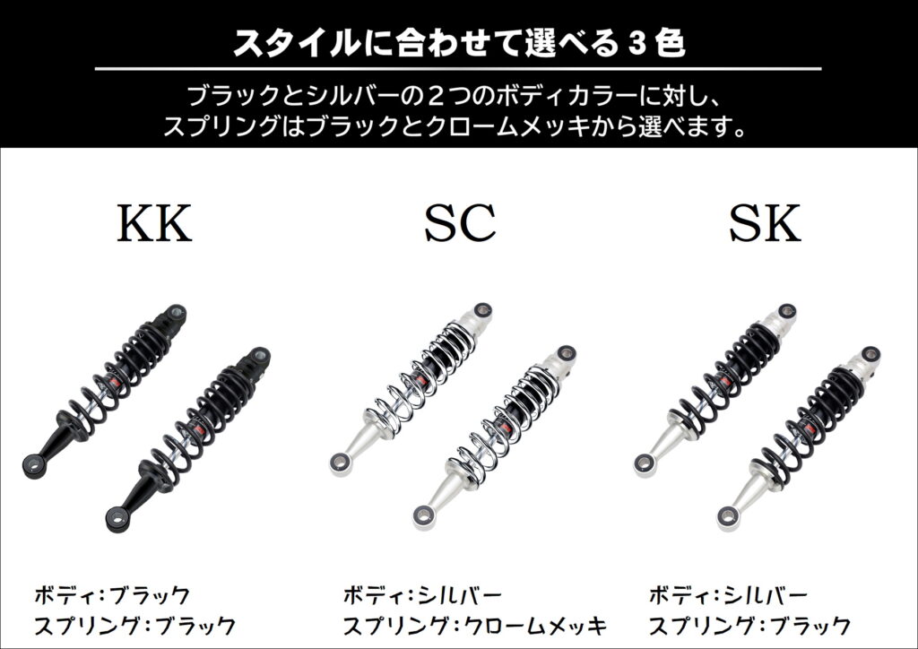ローダウンで足つきを改善するだけでなく、お気に入りのカラーコーディネートでバイクの見た目をカスタマイズすることもできてしまいます。