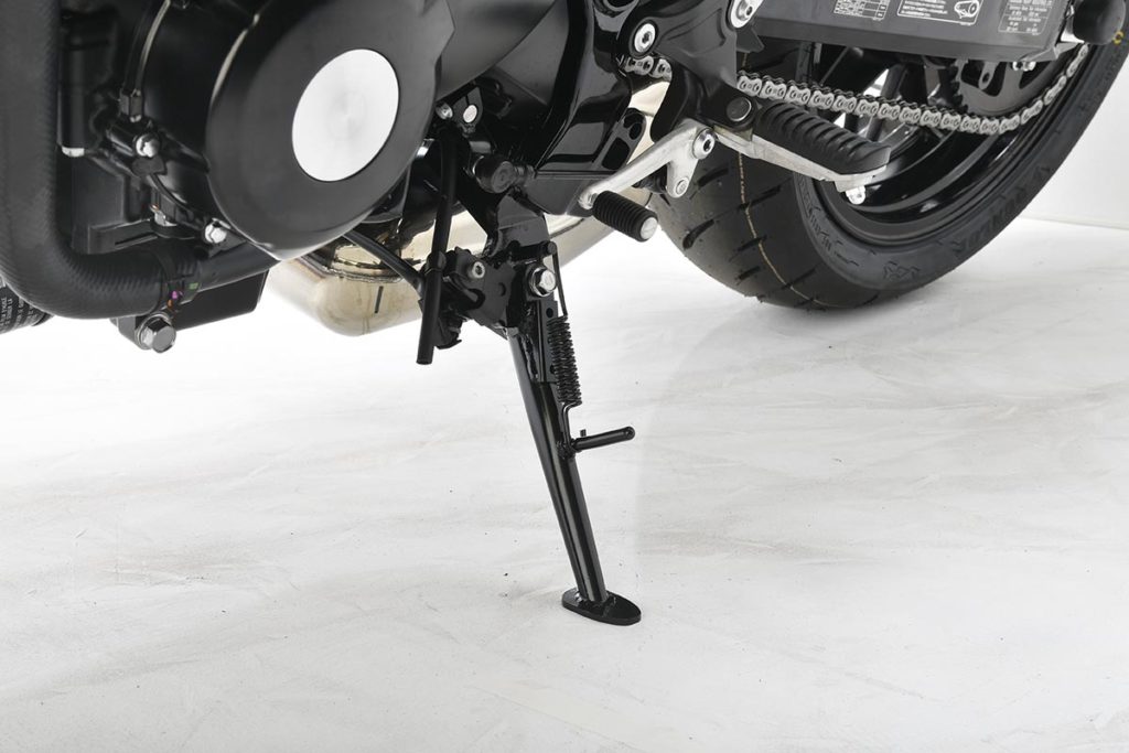 ローダウンをさせたZ900RSは、ノーマルのサイドスタンドのままで停車すると、車体と地面との距離に対してサイドスタンドが長すぎる状態になり、車体の傾きが起き気味になってしまいます。