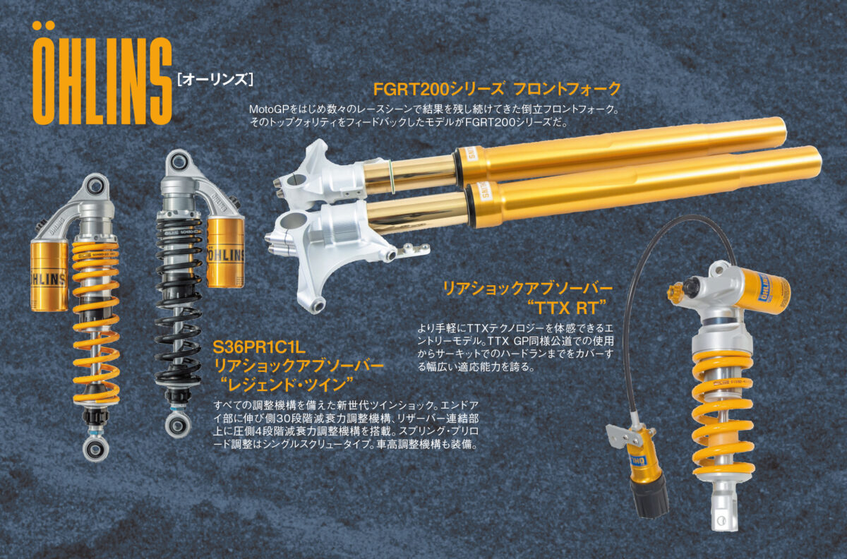 中でもサスペンションを交換する効果は特に大きい。サスペンションは凸凹路面の振動を吸収したり、加速時にはエンジンで生まれたパワーを、タイヤを介して効率的に地面に伝えるという役割がある。そして、減速時には車体の変化を軽減しながら、ブレーキで生まれた制動力を路面に反映して車体を減速させる。さらに、コーナーリングでは旋回動作で生まれた遠心力を受け止めながら、バイクの旋回力へ還元するなど、バイク走行のあらゆる場面で大きな役割を果たしている。そんなサスペンションだけに、交換することでより理想的な走りを手に入れられる。