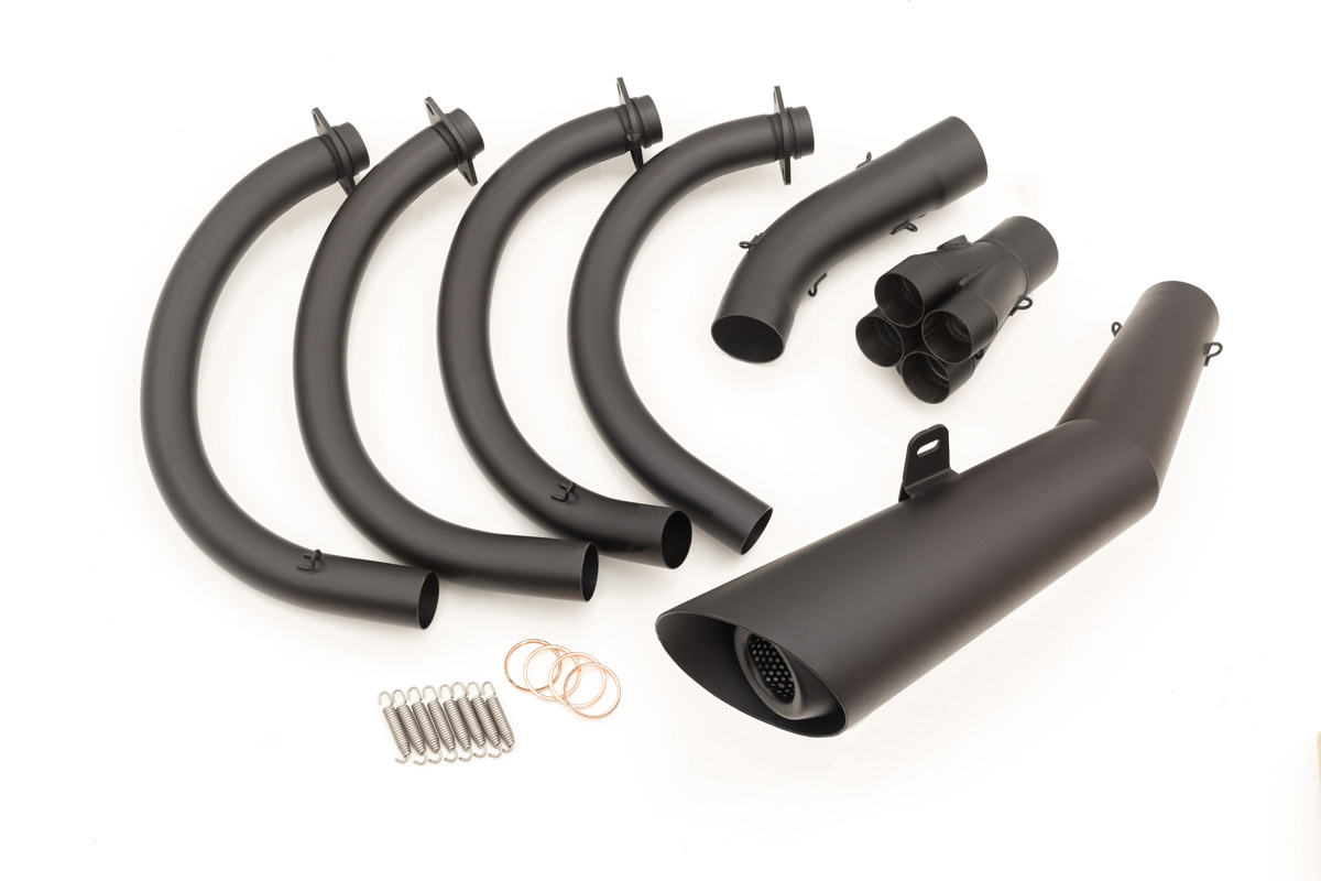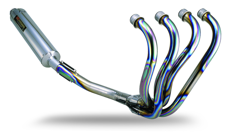 フルエキゾーストタイプは、エキパイからサイレンサーまでマフラー全体の交換になるので、スリップオンマフラーに比べるとコストはかかるが、その代わり大幅な軽量化とパワーアップを望める。また、エキパイも変更するのでスリップオンマフラーよりドレスアップ効果も高いのが特徴だ。