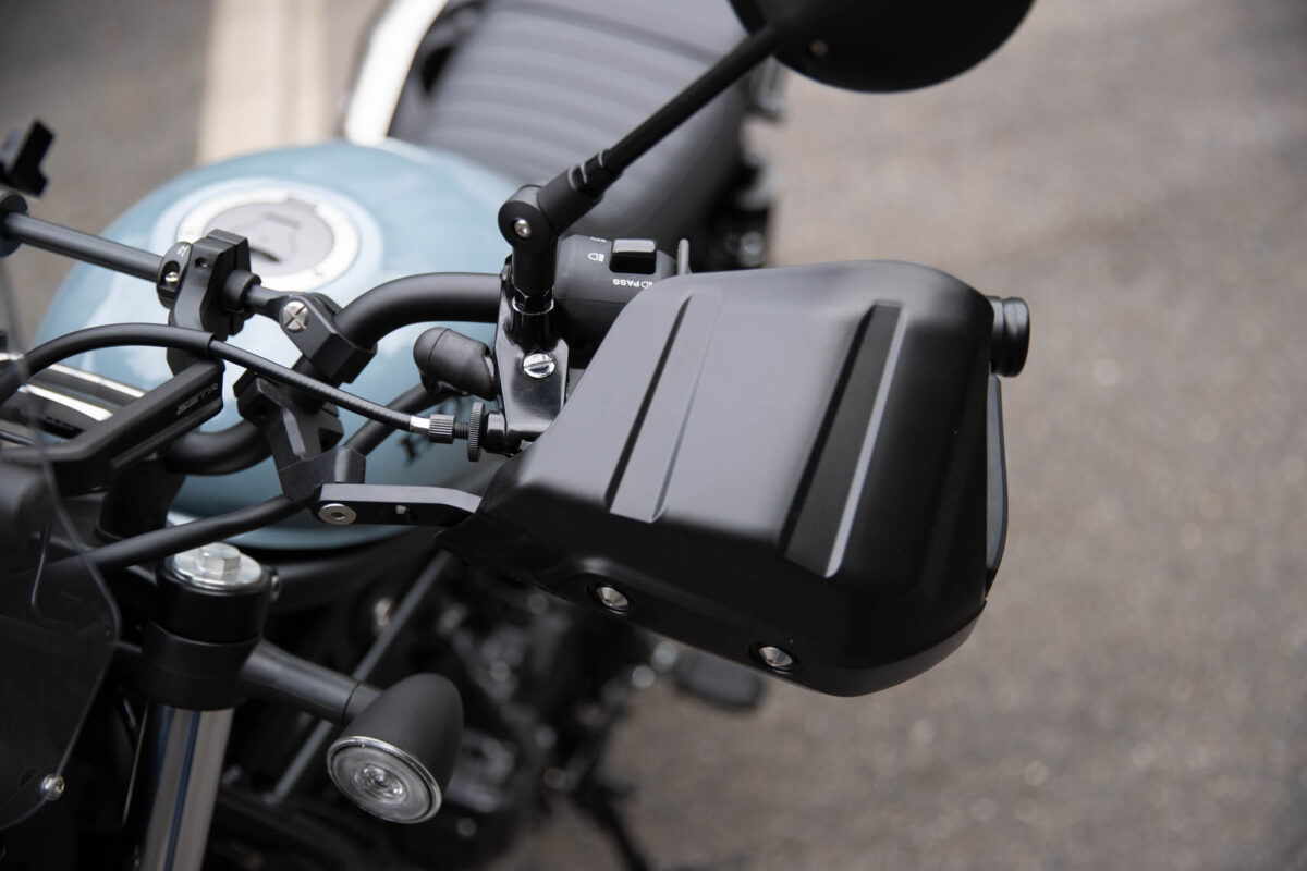 まずは、目の前にある車両と持っているハンドガードの相性が合っているか確認しましょう。ハンドガードは取付けの仕様面で分けると、アドベンチャー用か、それ以外の2種が存在します。アドベンチャーアーマーハンドガードはその名の通りアドベンチャー機種向けに開発されたもので、サイズは小さめ・全長も短くできています。クランプも22.2mm径のハンドル向けなので、現在テーパーバーが主流のレーサーには正しく付けられません。付いたとしてもパーツの強度そのものがレーサー向けではないのです。なんとなく固定はできてしまうので、現在ご自分のアドベンチャーバイクにアーマーハンドガードを装着されている方は改めてご確認ください。逆もまた真なりで、汎用のアーマーハンドガードをアドベンチャーバイクに付けようとすると、スクリーンなどと干渉しがちです。なお、アーマーハンドガードはZETA RACINGやレンサルなど多くのハンドルに装着可能ですが、テーパー角が急なハンドルバーや、レンサルのツインウォールバーには取付けられないことも知っておいてください。