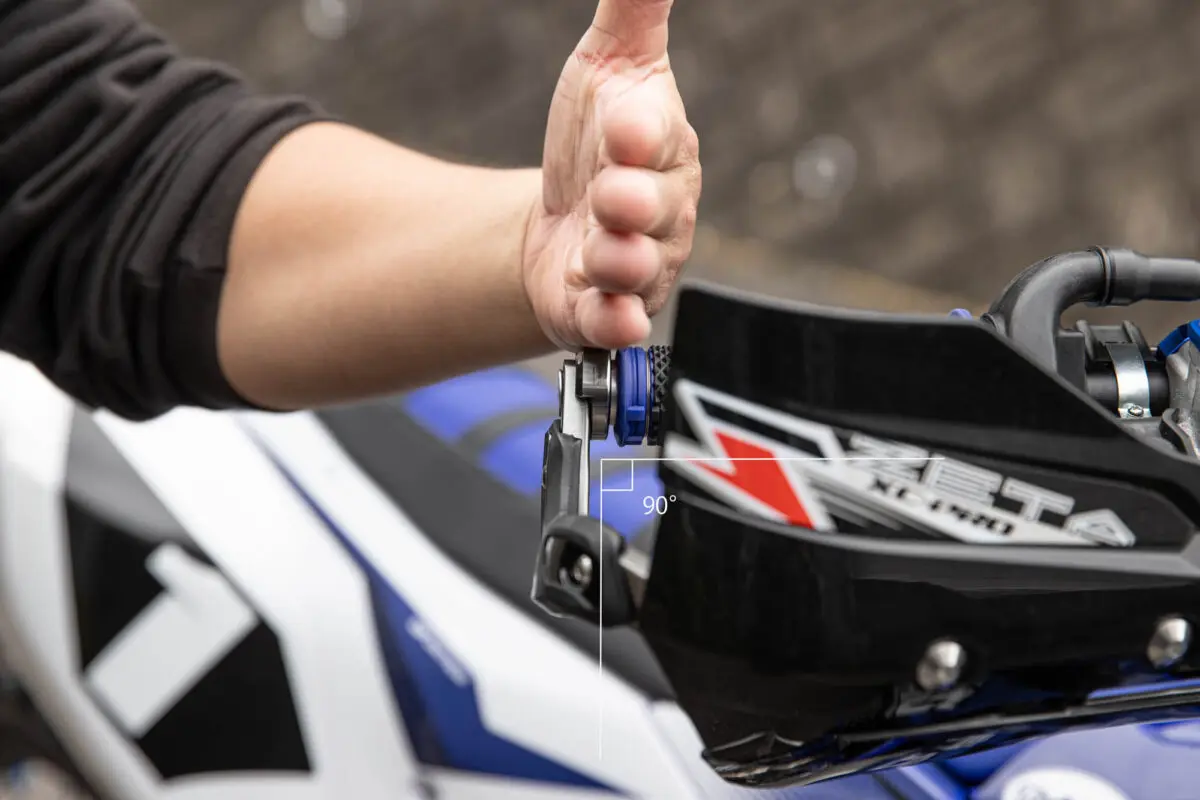 最も強力に取付けられるのはトップブリッジにマウントする、ハンドガードマウントサイドタイプ/フロントタイプです。物理的にハンドガードが転倒時に回ることがありません。このタイプのマウントは、マウント位置が下がるほど強固になり、ハンドル周りの剛性も上がっていきます(上がれば良いというものではないのでご注意ください)。