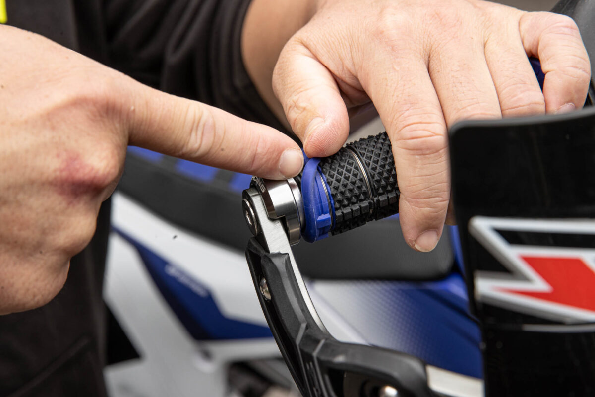 なお、バーエンドにオプションのバーエンドプラグを差し込むことで、グリップやスロットルへの泥の侵入をより防ぐことができます。また、このプラグを装着することでアーマーハンドガードにもプロアーマーハンドガード用のより強固なバーエンドアダプターを使うことができます。ただし、バーエンドはわずか5mm位置が変わるだけでもハンドル幅のフィーリングが変わりますので、好みに合わせて慎重に決めたいところです。