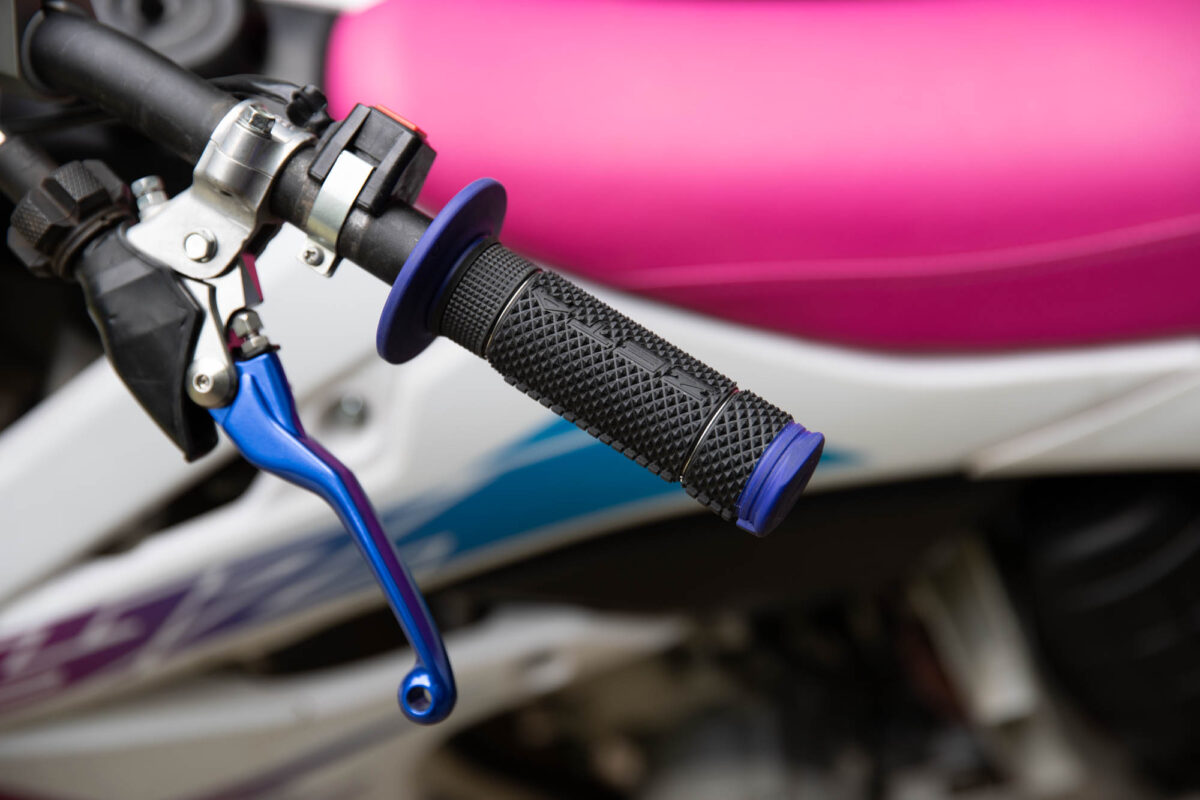 逆に長い距離を走るライダーは太めのグリップを好む傾向にあります。グリップが太いということはゴムが厚いわけで、エンジンやギャップの衝撃を吸収してくれるだけでなく、てこの原理でより少ない力だスロットルを回すことができるため、疲れづらく豆ができにくい利点がありますしかし、太いグリップは握るために握力が必要なので、腕上がりの遠因になったりとデメリットもあります。