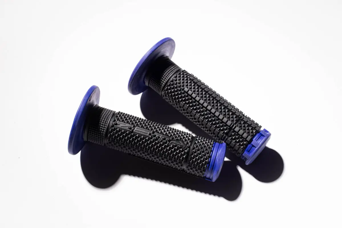ゴムの質感や摩擦力などいろんな尺度でグリップを分類することができますが、まずはもっとも基本的な「太さ」の選び方から知っておきたいところです。特にスプリント出身のライダーは細いグリップを好む傾向にあります。フロントタイヤからサスペンション、ステム、ハンドルを通じてグリップに伝わってくる微細な路面状況を正確に把握したいということでしょう。また、彼らのように長年オートバイに乗り込んでいるライダーは掌の皮が厚くなっていることもあって、ちょっとした振動の多さが手の痛みに繋がることも少ない模様。トライアルライダーなどは、なるべく細くしたいことからグリップのゴムをわざと伸ばして装着する人もいるのだとか。