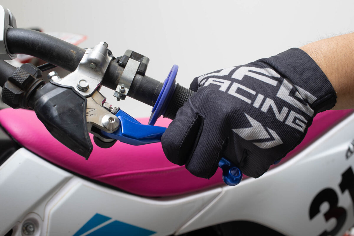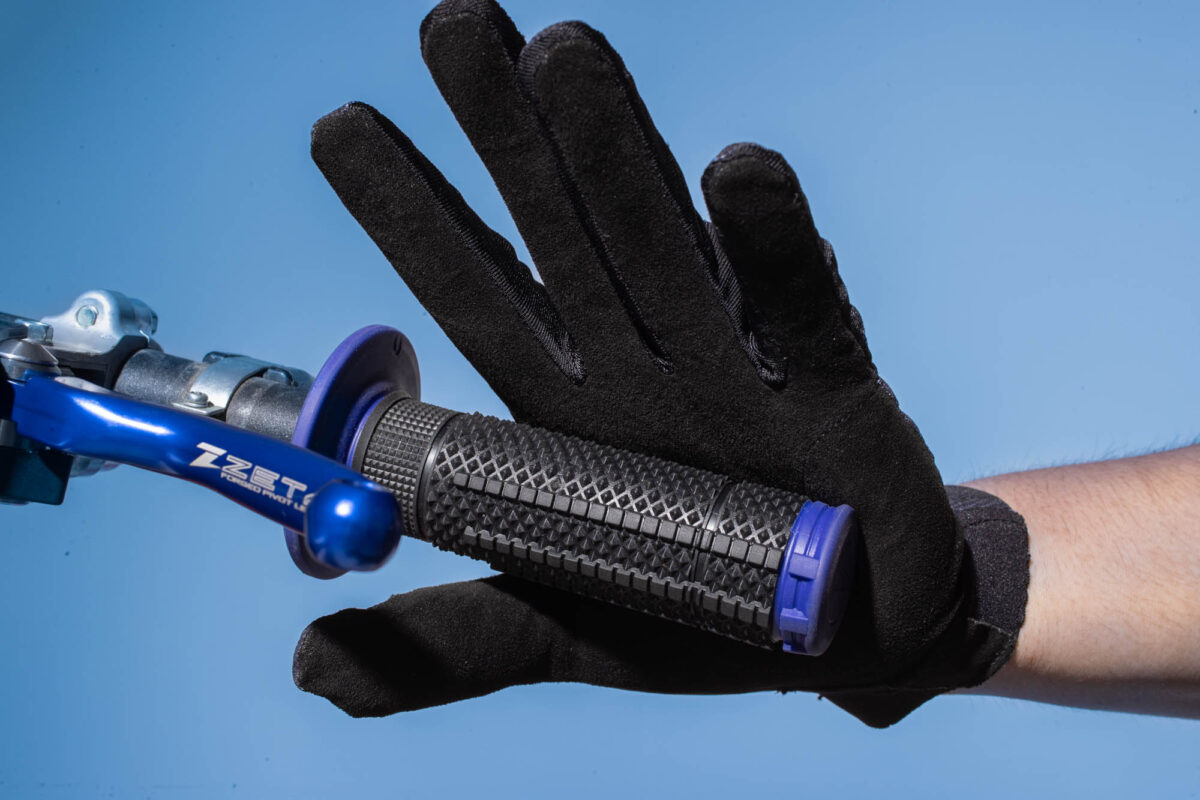 ワッフルの代わりに、商品名の由来にもなっている“エッジ”がしっかりグローブ越しに伝わってくるのも好印象でした。先述したダートグリップ同様に、オフロードバイクのグリップを握る時の基本姿勢「ドアノブ握り」がしやすいようにエッジが立てられているのも好印象ですし、エッジがはっきりしているので人差し指・中指あたりがちゃんとフリクションしていることがわかります。ドアノブ握り用になっていないグリップよりも、意識がしっかりドアノブ握りに向くので自然と綺麗なフォームになりそうです。