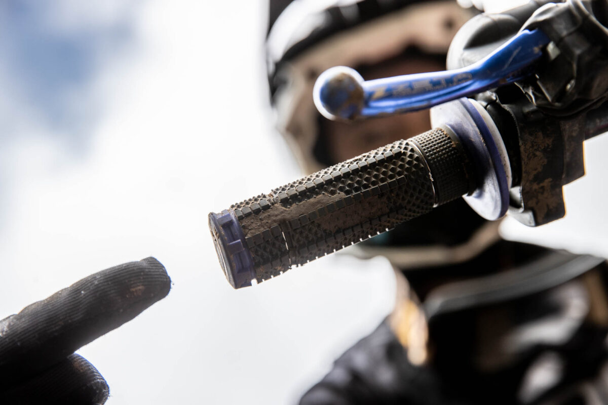 オフロードバイクにとってグリップはとても大事なパーツです。時には暴れるハンドルを抑え込まなくてはならないし、不安定な路面で的確なスロットル操作をする必要もあります。プロライダーたちは各々の感覚で好みのグリップを持っていて、ほとんどのライダーは「グリップが傷んでいたら乗れない」と言います。それほど大事なものなので、彼らにとってはレース毎に交換する消耗部品とも言えるでしょう。