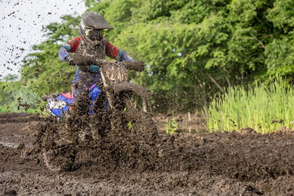 当時はフェンダーマットの基本的な使い方に沿ってフェンダー裏のみに装着しました。しかし、稀に見る大荒れのマディコンディションとなった2024 D.I.D 全日本モトクロス選手権シリーズ第3戦では、フェンダー裏だけでなく、ハンドガードやフェンダー上部など、ライダーごとにフェンダーマットの応用術が見られました。そこで、今回は昨年行った「マディ対策の定番、フェンダーマットの効果を実感」に続く応用編として、装着位置による効果の違いについて検証してみました。