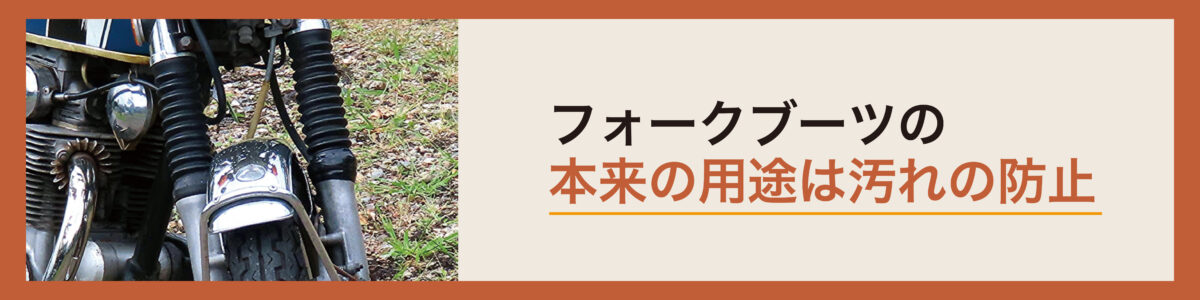 フロントフォークを覆うフォークブーツの役割は、バイクの走行中・保管中に汚れやホコリなどからフォークを保護することが目的ですが、その古めかしい見た目に惹かれて装着する人も少なくありません。