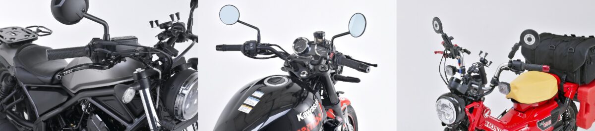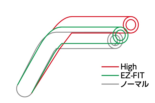 ラインナップはEZ-FIT(純正比7㎜バック/7㎜アップ)やHIGH(純正比21mmバック/21mmアップ)等車種によりさまざまな種類があり、純正ハンドルよりグリップ位置を近づけたリラックス方向のポジション改善が可能です。