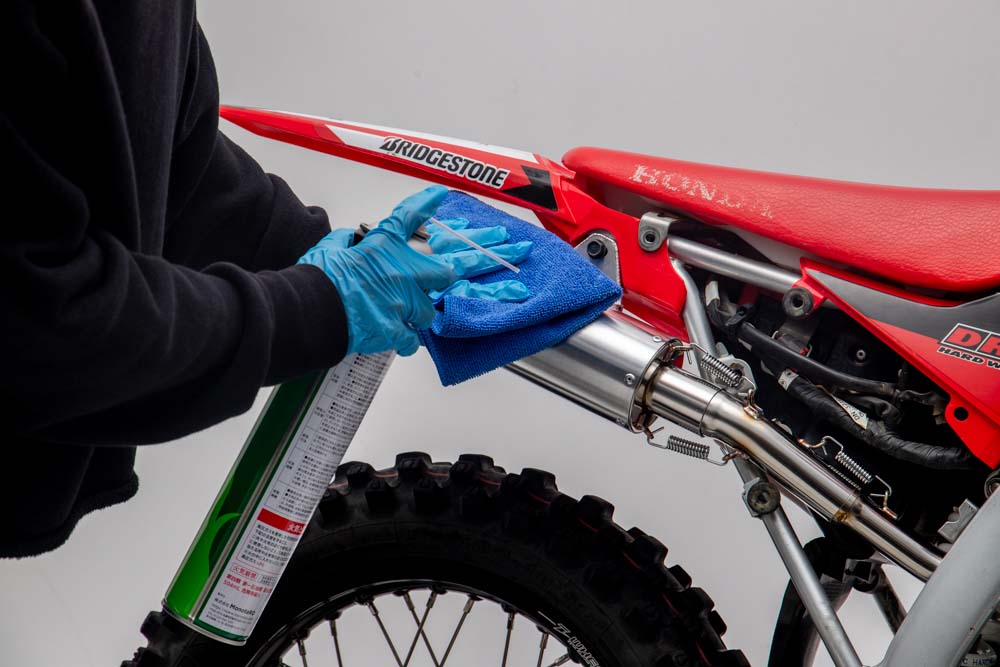 サイドカバーをつける前に、念の為にパーツクリーナーを吹いて清潔な布やウエスで拭き上げておきましょう。