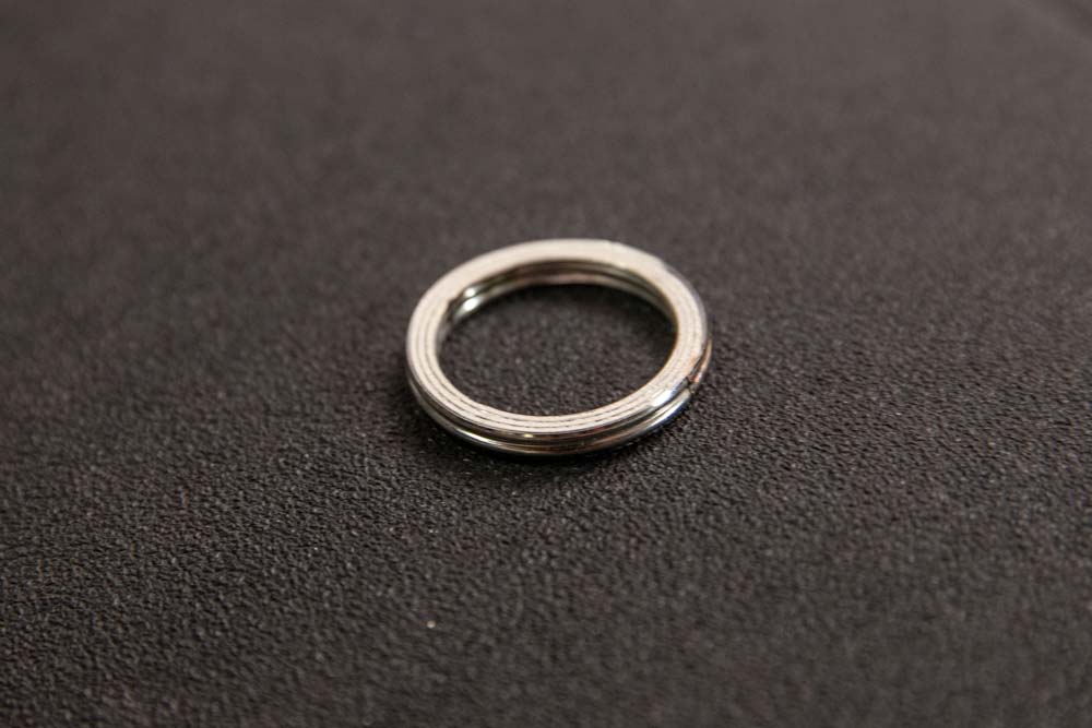 エンジンとの接合部に新品のガスケットを入れて、仮留めしていきます。ここで本締めしてしまうと、サイレンサーとうまくエキパイが接続できないことがあります。本締めは作業の最後に全体を通して行うので、必ず仮留めにしましょう。この時、左右のナットを少しずつ交互に締めていくのがポイントです。いきなり片側だけ強く締めてしまうと均等に締めることができず、排気漏れの原因になりますので注意してください。