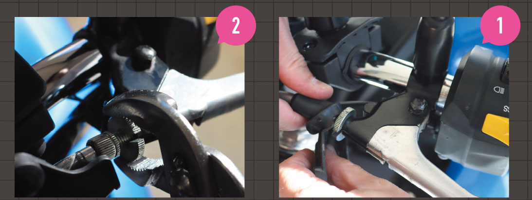①まずはクラッチワイヤーのアジャスターを覆っているラバーを引っ張ってワイヤーが見えるようにする。
