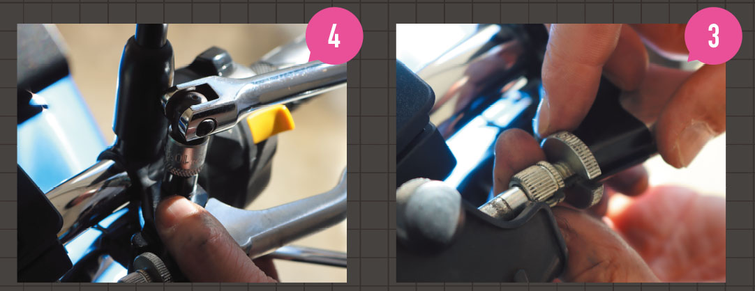 ④次にレバーを固定しているボルトを取り外す。裏側にナットがあるので、それを固定して回していく。
