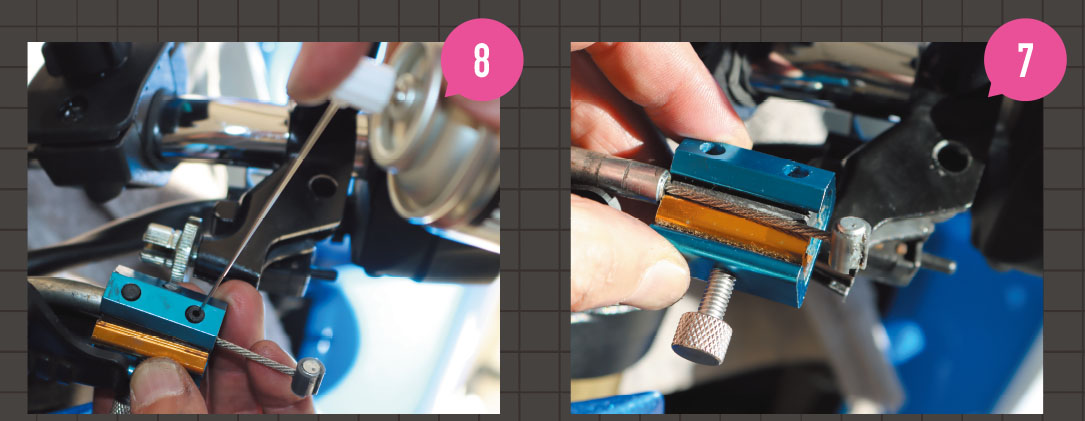 ⑦ワイヤーを引っ張り出してワイヤーインジェクターを取り付ける。