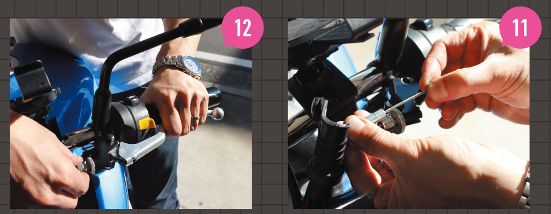 ⑪これでしっかりと内部までグリスが行き渡った。ワイヤーインジェクターを取り外し、レバーを元に戻していく。