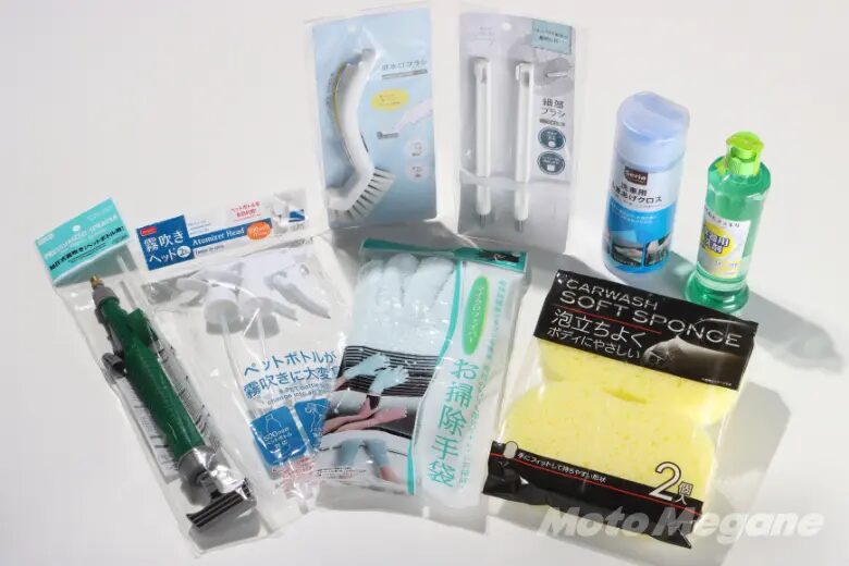 洗車とは言っても、とりあえずキレイにするのであれば高級洗車グッズを使わなくとも、100均グッズである程度洗車できるのだ。種類もいろいろとある。