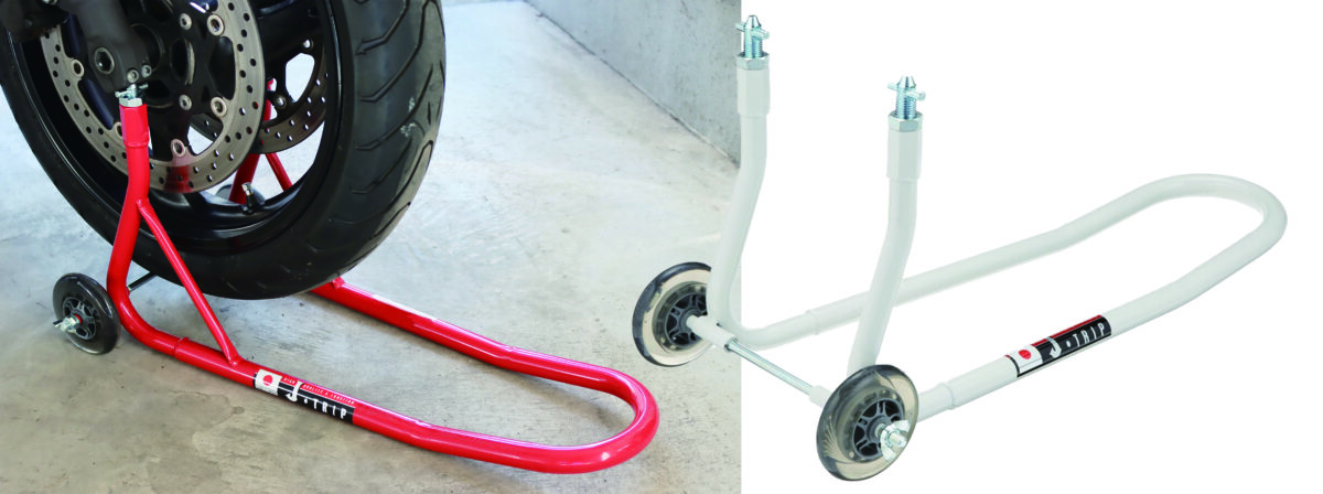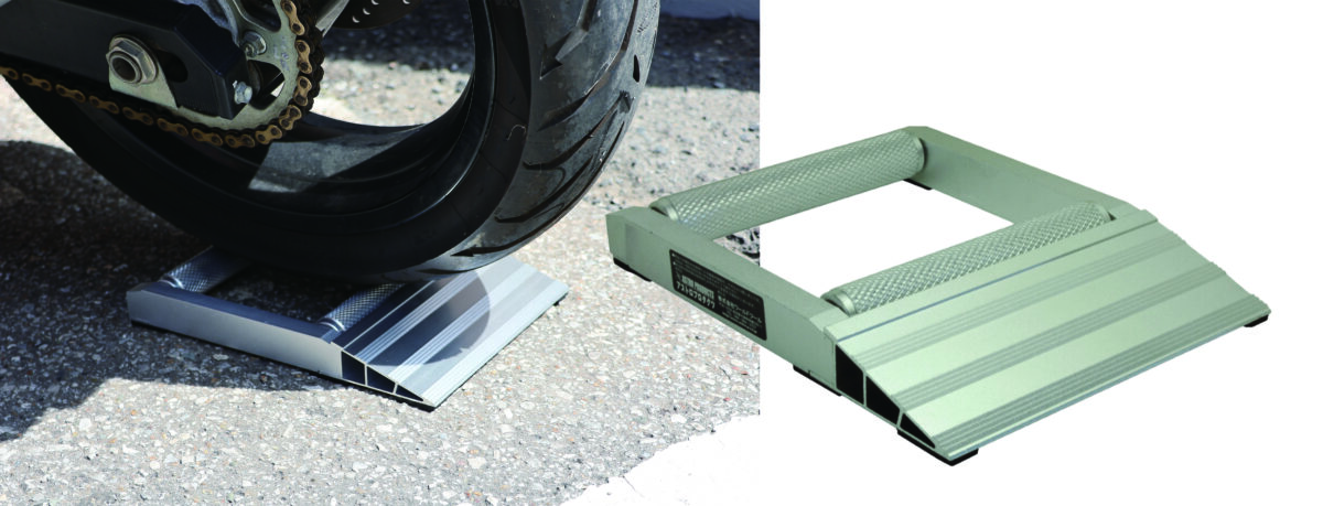 チェーンのグリスアップやホイール磨きなどの際にメンテナンスローラーがあれば、リフトアップが必要な作業も、素早く簡単に行うことができる。ローラーにはベアリング入りなので、手でも簡単にタイヤを回転させることができる。傾斜付きでスムーズにタイヤを載せることができるのも特徴だ。ただ、耐荷重が200kgとなっているので、それ以上の重量がある車両には使用できないので注意が必要だ。