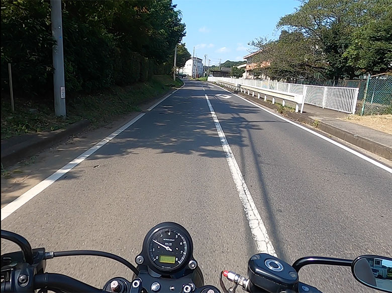 エンジンを暖めてオイルの出を良くするために5〜10分ほど試走します。「1〜2分ほどアイドリングでの暖気でもOK」と言われることがありますが、それはウェットサンプ方式のオートバイに関して。ドライサンプ方式を採用しているV-ROD以外のハーレーダビッドソンはこのように試走した方がオイルの抜けが良くなるのです。どっちみち自宅前でアイドリングすると近所迷惑になるバイクでもあるので、ショートツーリングがてら軽く流してやりました。