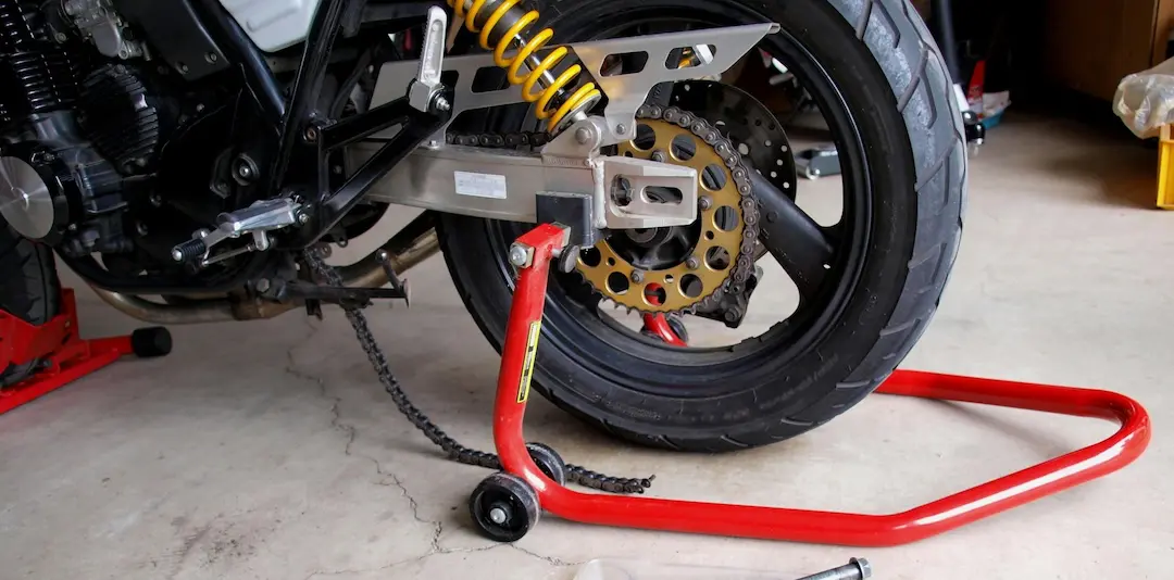 バイクの日常点検程度であればサイドスタンドやセンタースタンドで立てた状態でもそこまで不便はありません。ただし、バイクのタイヤやチェーン関係のメンテナンスをするときや部品脱着の際にはメンテナンススタンドが活躍します。