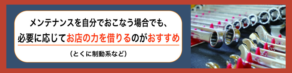 メンテナンスを自分でおこなう場合でも、必要に応じてお店の力を借りるのがおすすめ(とくに制動系など)